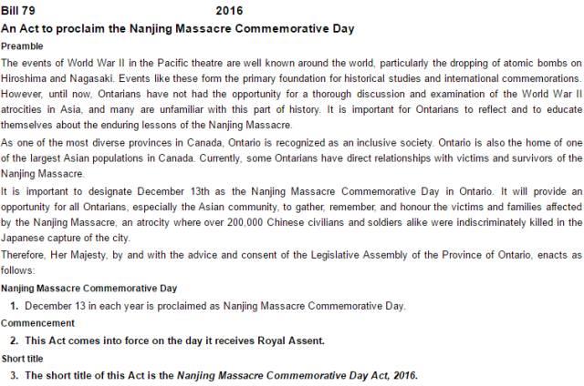 议会举行会议 议案全称Bill 79, Nanjing Massacre Commemorative Day Act, 2016: