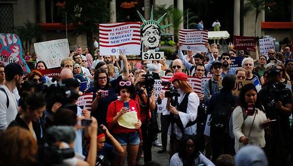 6月29日,美国纽约示威者举行抗议特朗普政府旅行禁令正式生效。 据法新社报道,美国官员称将对伊朗、利比亚、叙利亚、也门、索马里、委内瑞拉、朝鲜、乍得实施旅行禁令。新的旅行禁令将于10月18日起生效。美国总统特朗普发推文表示,保证美国的安全是第一要务。 此前据央视消息,当地时间22日下午,据美国政府高层官员透露,为期90天的旅行禁令即将到期,特朗普政府正在准备替换现行禁令,改为对具体国家实施不同的更具针对性的旅行禁令。目前白宫尚未透露关于新禁令的细节,仅通过声明表示:特朗普政府只会准许那些被严格审查,不会对国家安全或公共安全造成威胁的人员入境。 据报道,在伦敦地铁爆炸案后,15日,特朗普在社交媒体上称,将出台“范围更广、更严格,更有针对性的”旅行禁令。华盛顿分析人士认为,无论出台何种新禁令,特朗普最终仍将受到最高法院的掣肘,禁令依然面对“被反对”、“被禁”加“被缩水”的可能。 现行的针对六个以穆斯林为主的国家的旅行禁令规定,除非与美国有“真实可信的关系”,否则美国在90天内禁止向来自伊朗、利比亚、索马里、苏丹、叙利亚和也门的公民发放签证,并在120天内暂停接收难民。周日(24日)就是该禁令生有效期的最后一天。