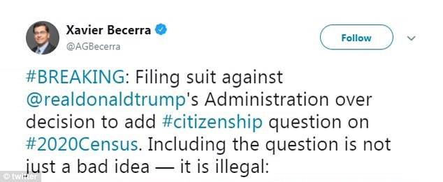 加州检察长贝赛拉推文,称将控告川普政府 消息传出后,多个“深蓝州”检察长立刻表示反对,加州更是首当其冲。